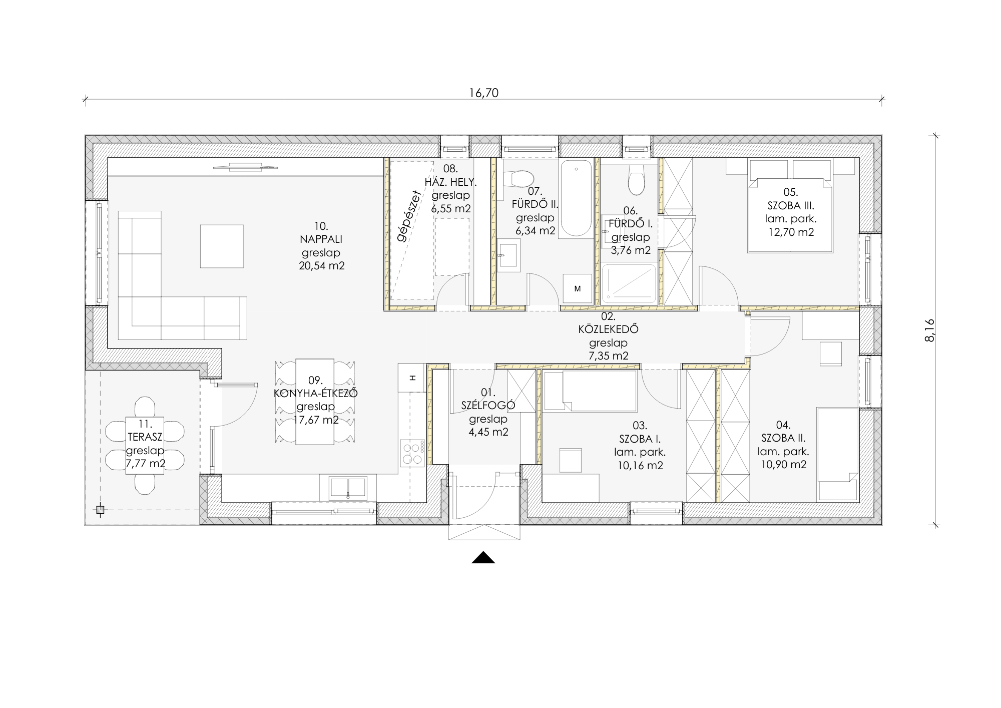 3–4 szoba, nagy nappali-konyha-étkező, közvetlen teraszkapcsolat. - Energiatakarékos, alacsony rezsi